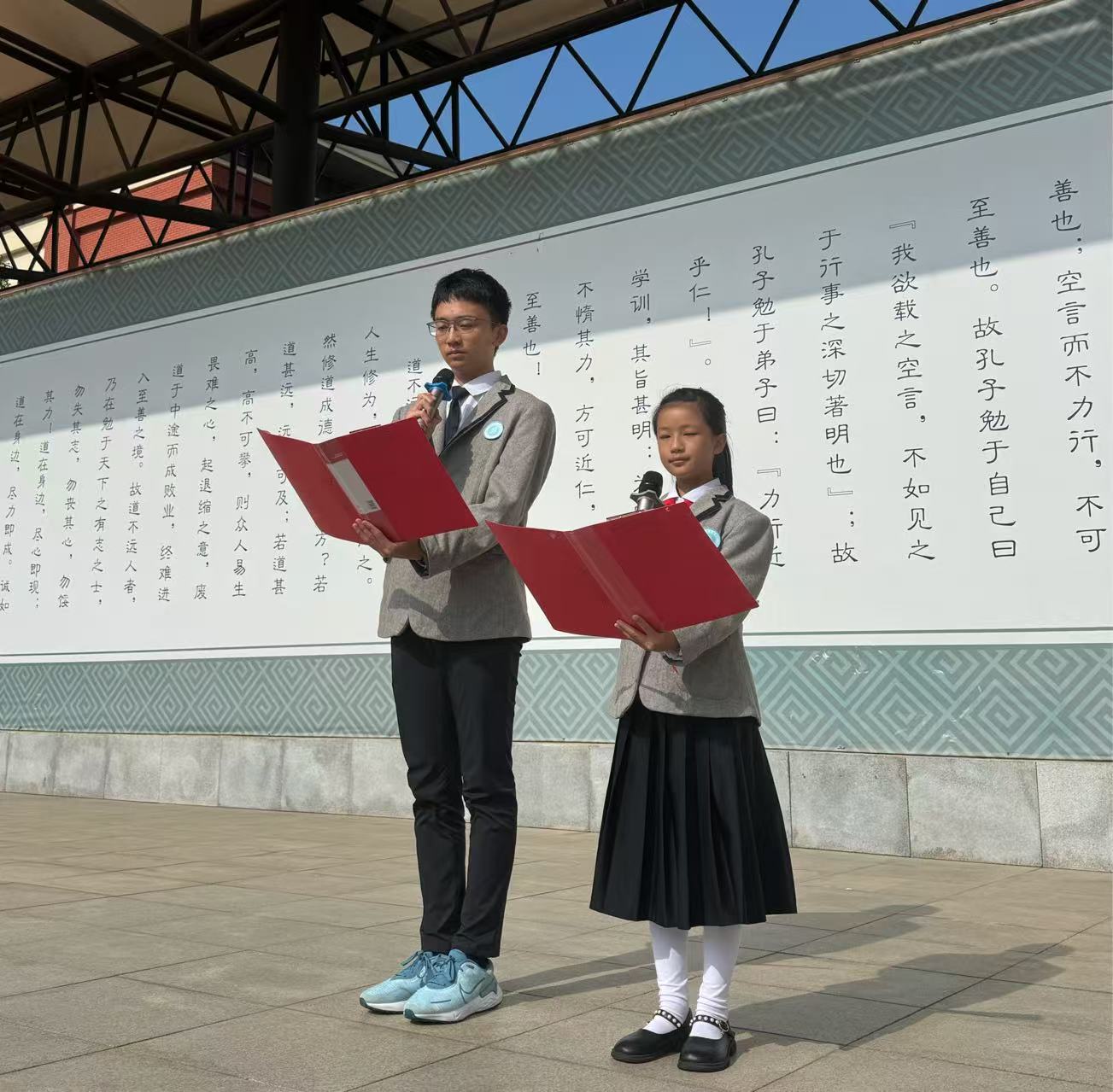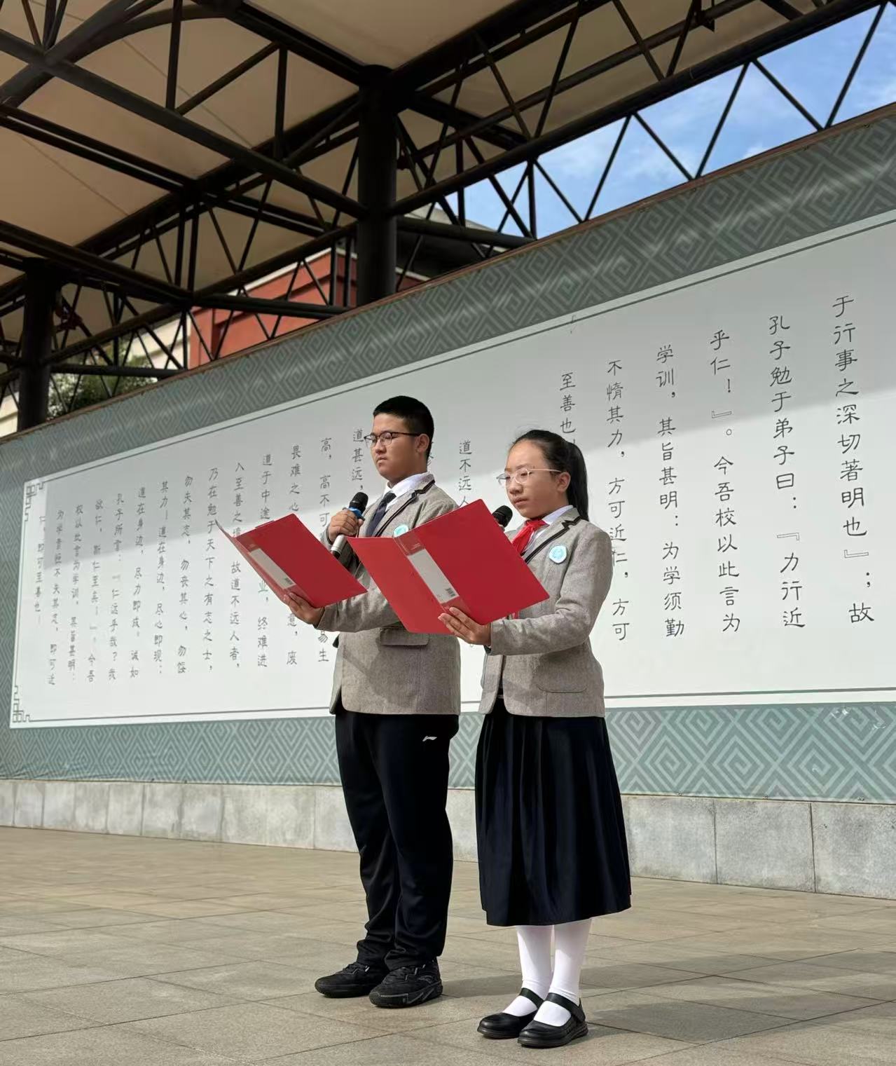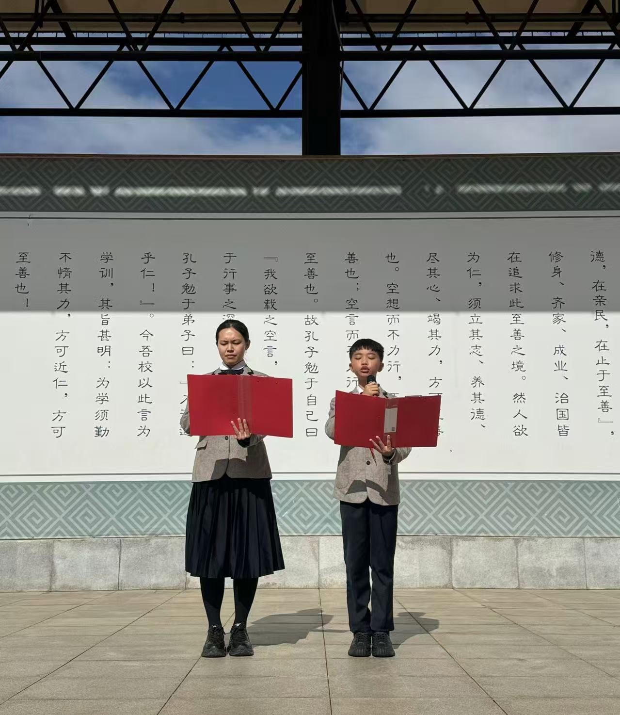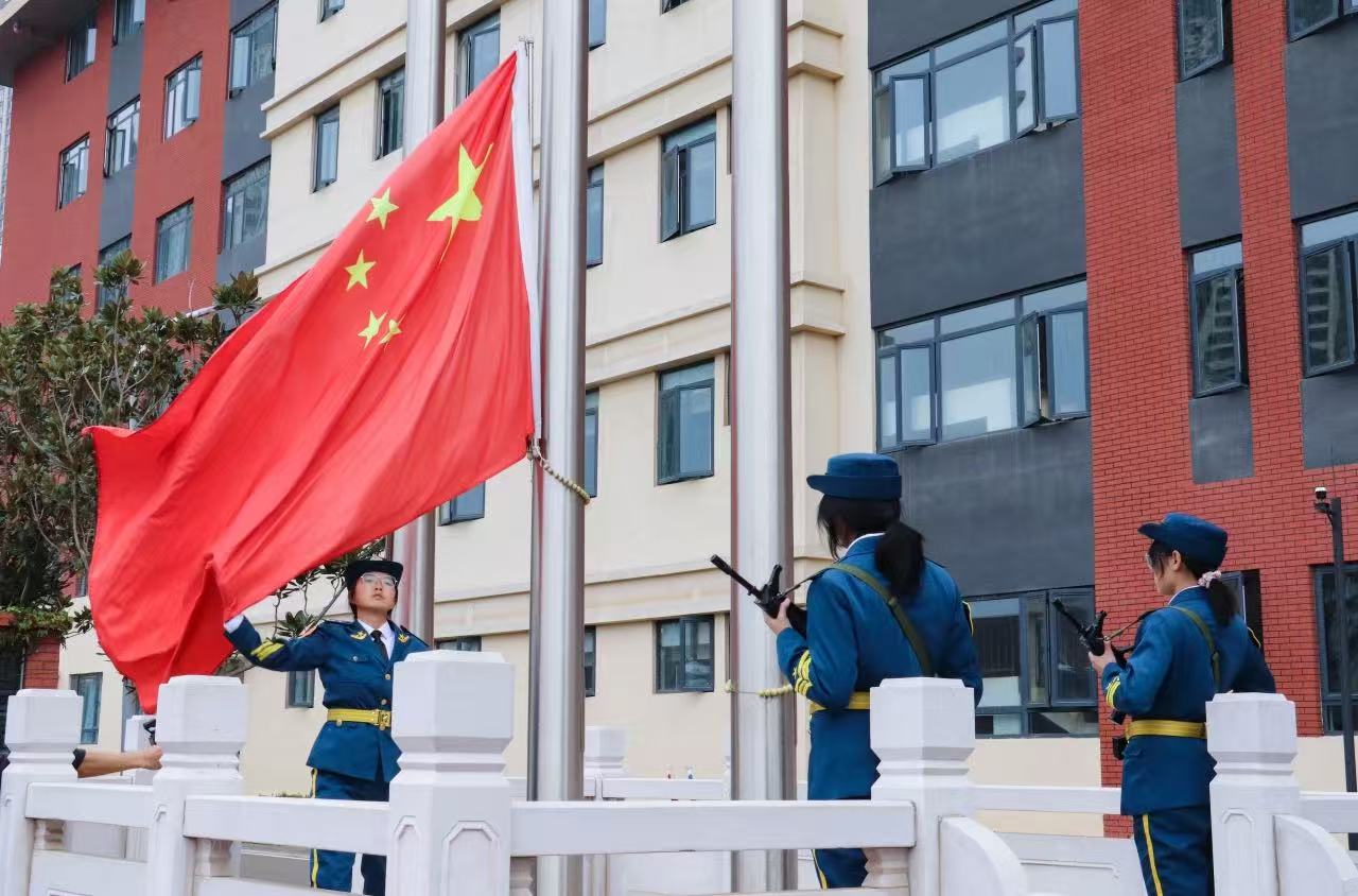 清晨,阳光洒满校园,全体师生齐聚操场,在庄严肃穆的气氛中,升旗仪式正式开始,小六(1)班赵垄玥、高三(5)班李恩,担任本次主持人。升旗仪式的护旗手们迈着整齐有力的步伐护送国旗走向升旗台。随着激昂的《义勇军进行曲》奏响,升旗手振臂一挥,鲜艳的五星红旗缓缓升起,全体师生面向国旗,庄严...