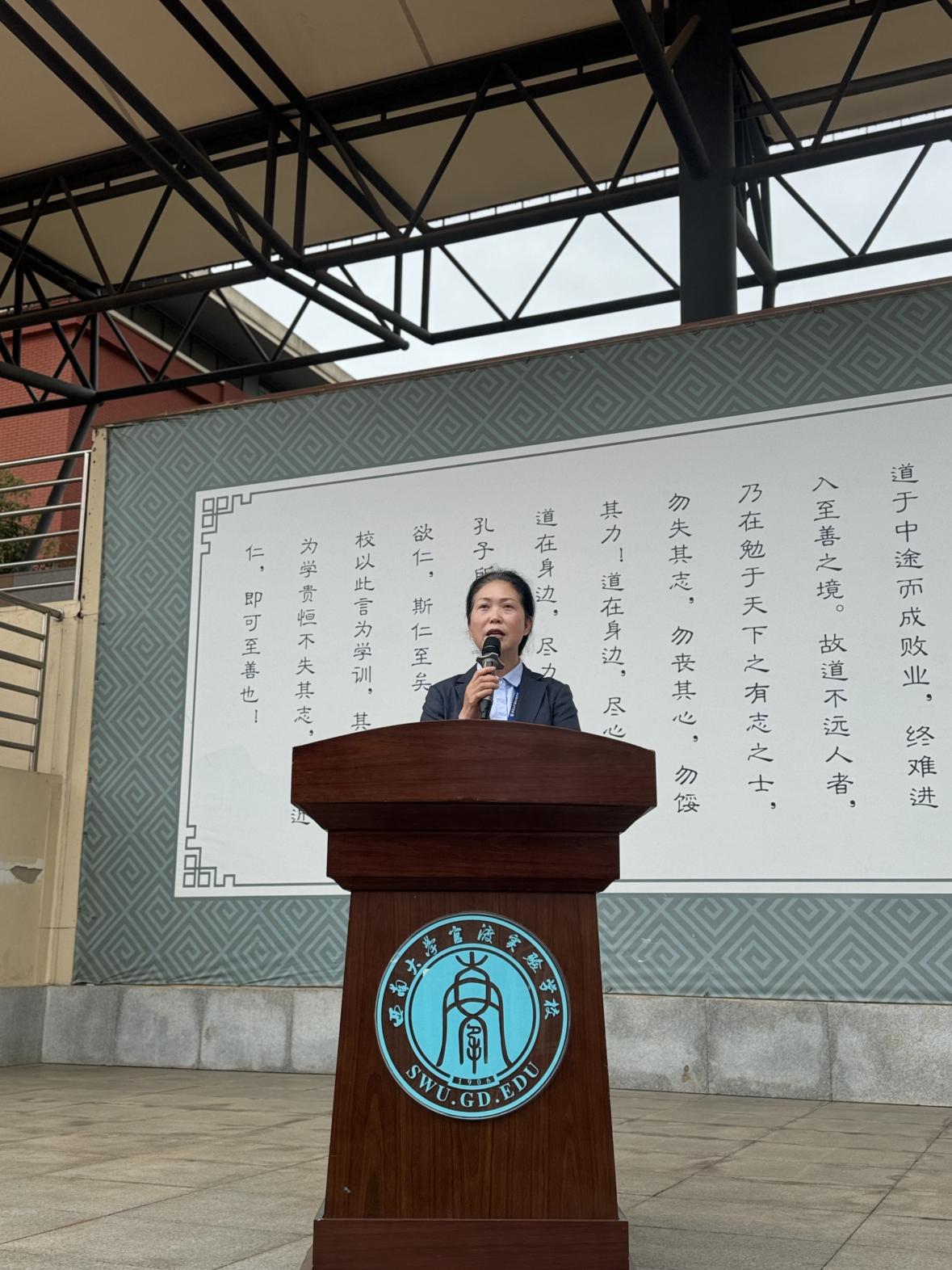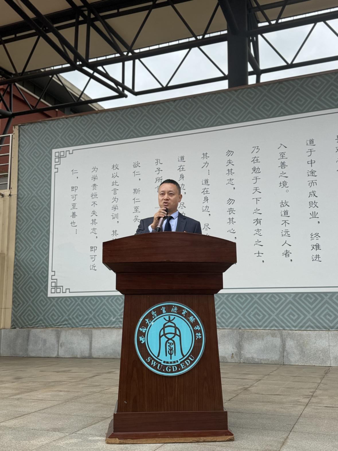 升旗仪式后,进行了西南官渡实验学校第七届“近仁杯”科技艺术体育节开幕式,副校长、工会主席邓伦玉为艺体节进行了致辞,党支部书记、校长宋奎瑞宣布了艺体节开幕。